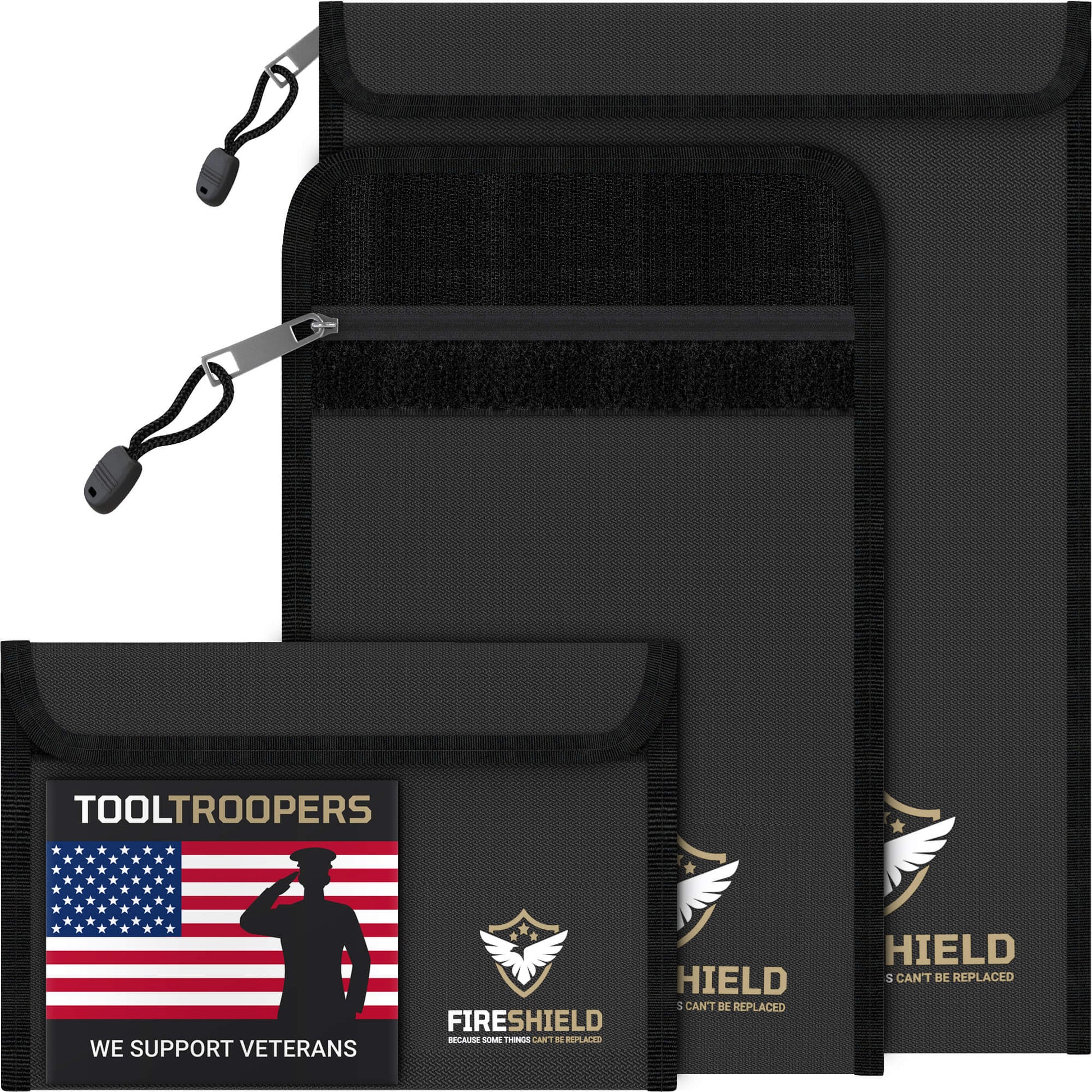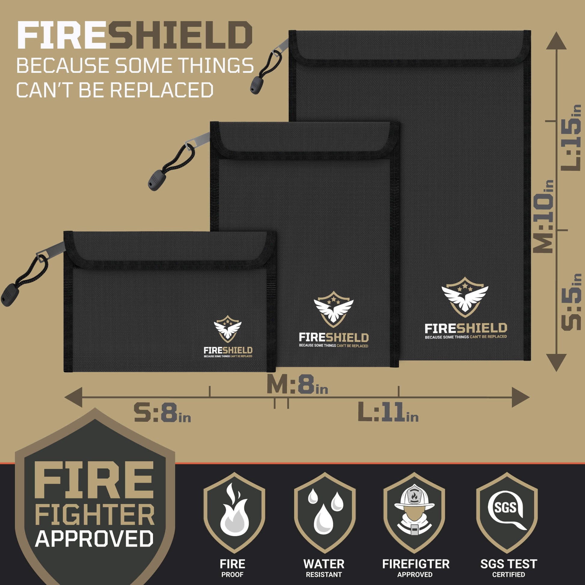 - THREE BAGS. NO COMPROMISES – Why squeeze everything into one bag? The FIRESHIELD PRO 3-Pack gives you the freedom to organize by size, category, or urgency. Store documents in the large, backup drives in the medium, and jewelry or passports in the small. Each bag is fireproof, water-resistant, and easy to grab when it matters most.