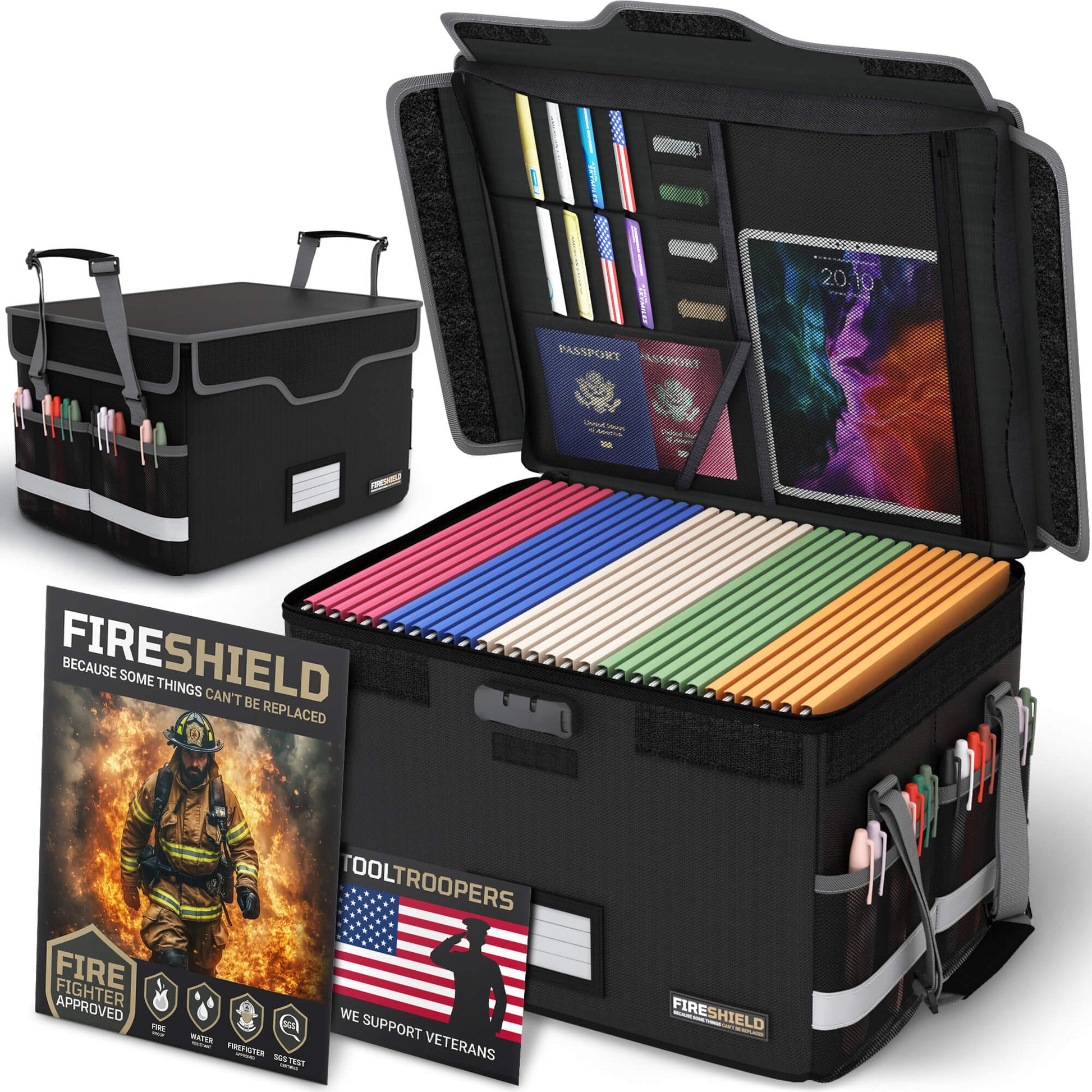 - MADE TO KEEP YOU ORGANIZED WITHOUT EVEN TRYING – Some boxes hold folders. This one holds your system. The FIRESHIELD PRO is built with a structured interior that fits hanging letter and legal folders, no bending, no cramming, so everything stays upright and visible. Inside, smart mesh pockets give you dedicated spots for passports, cards, USBs, or even a tablet. Whether you use it daily or for long-term storage, it keeps things where they belong, without the stress. [Hangers not included]