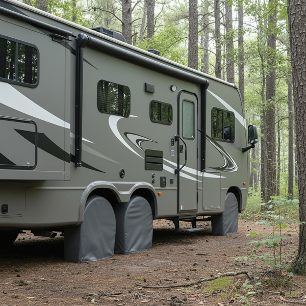 Had enough of flimsy camper tire covers that get torn apart or blown away?